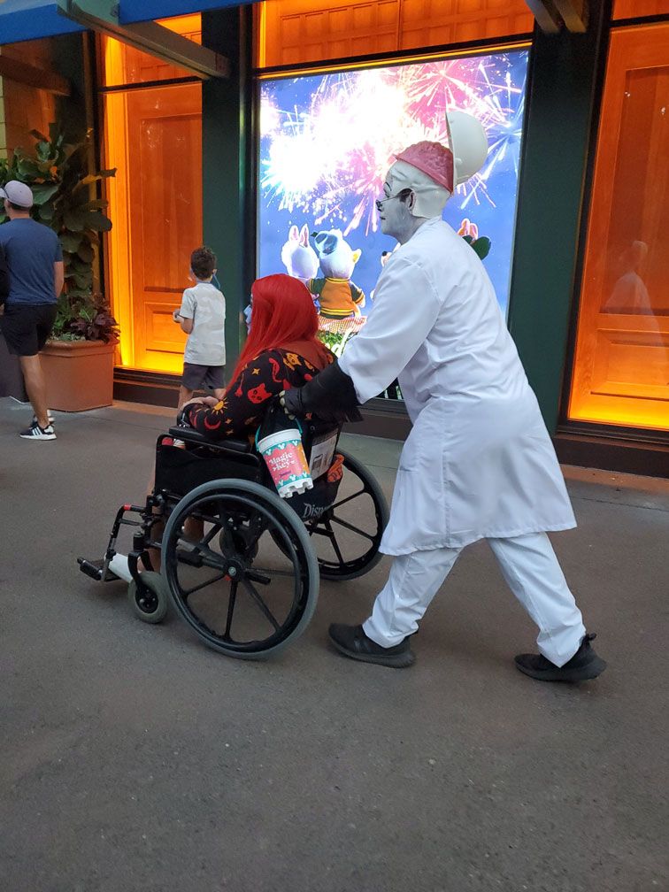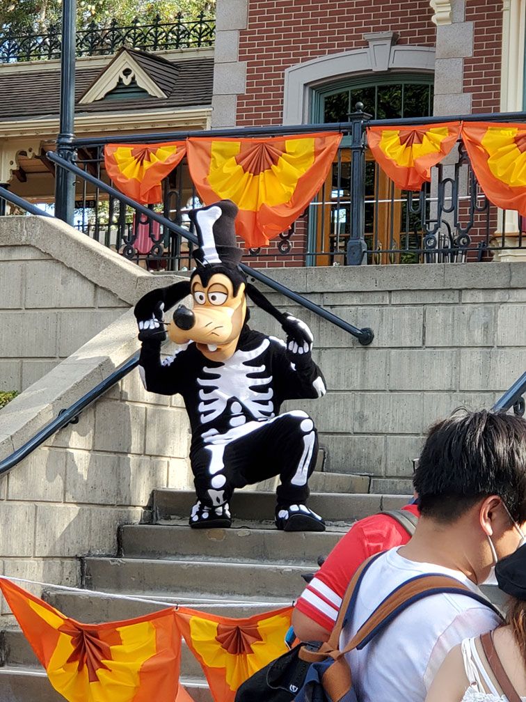 Love it!Oh looky! There’s Goofy in his skeleton costume on the steps of the train station!