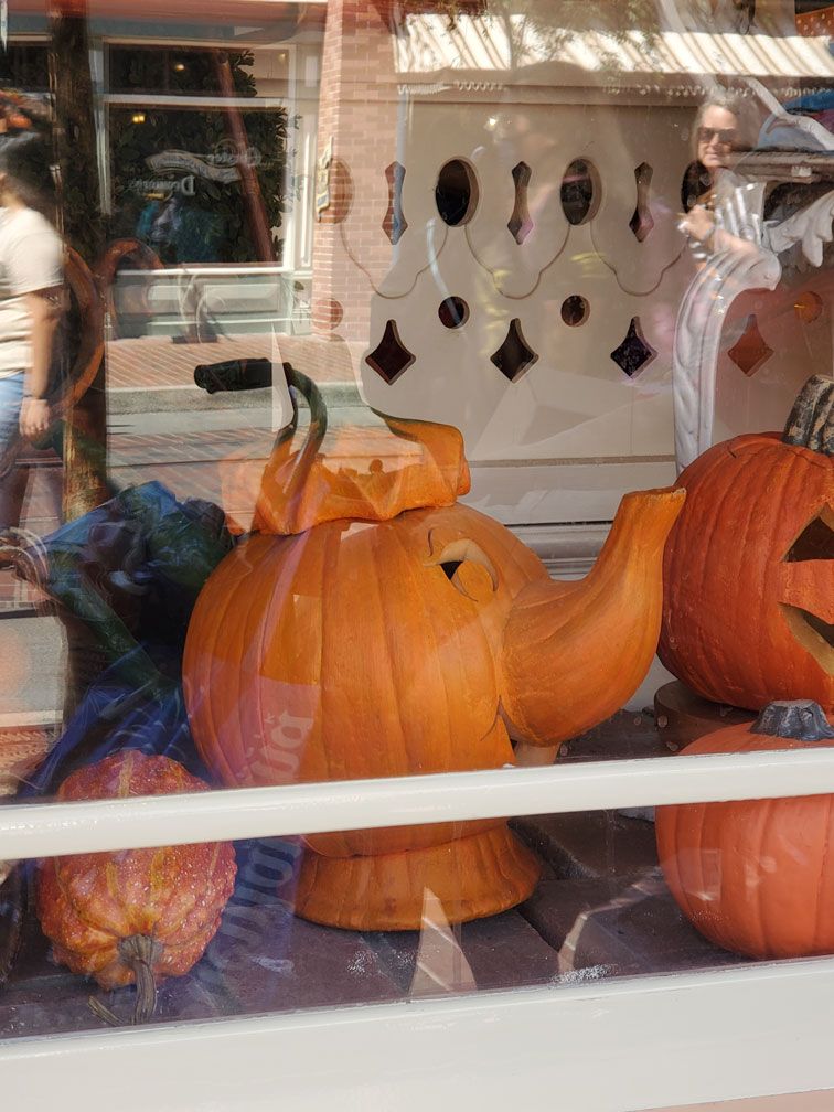 Cute.And look over here, there’s a Mrs. Potts pumpkin!