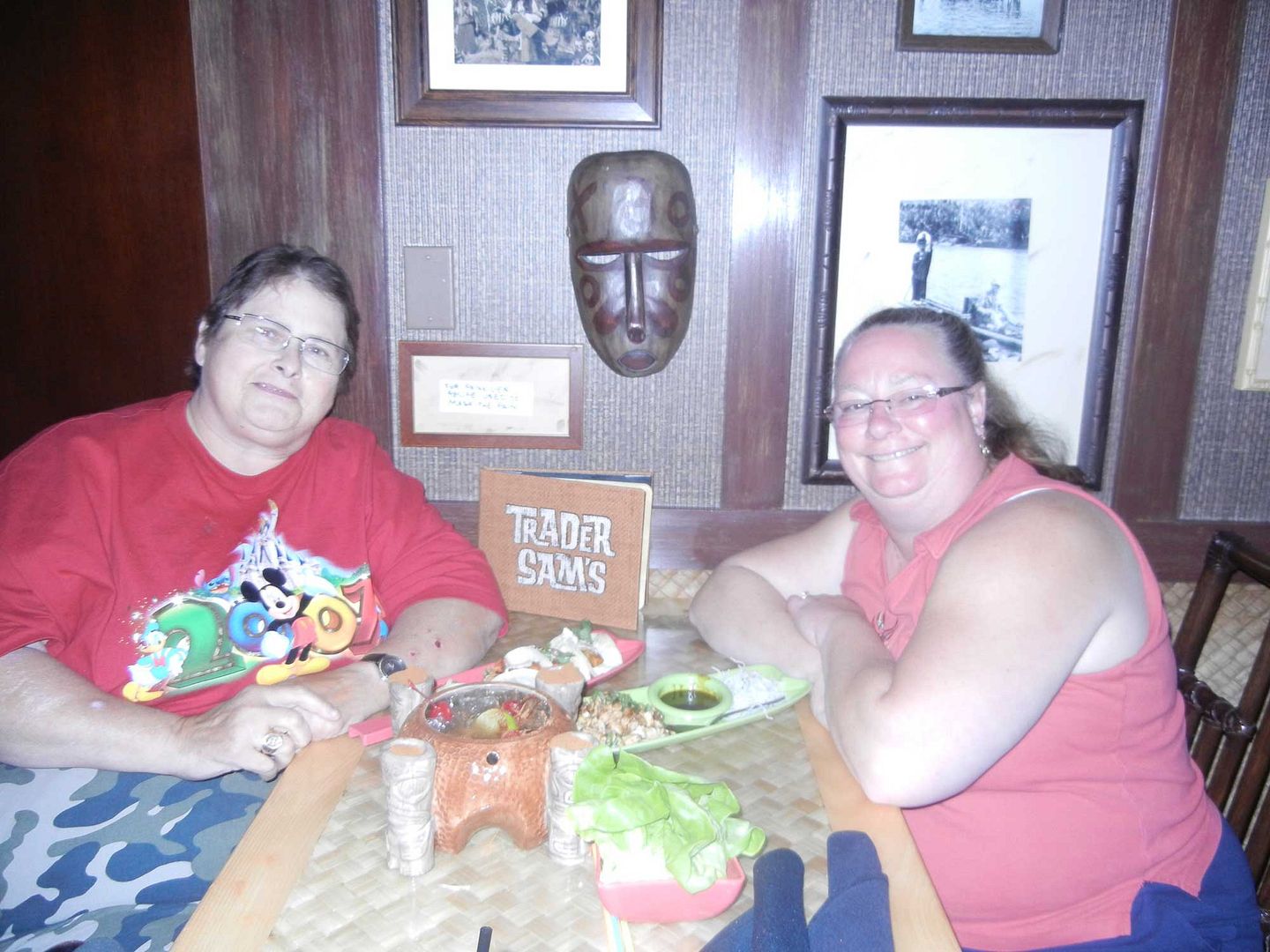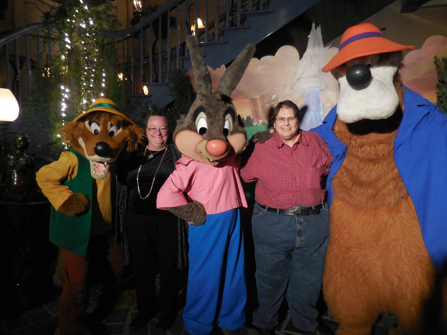 Its not until page 16, that the Prime Rib actually gets cooked, but everyone was pretty darned concerned about that roast in the time leading up to it. Just so you understand the rationale of bringing along a Prime Rib, Fran had recently recovered from a severe bout of venal ulcers in her leg and would not have the strength to dine out every night. She would need her rest, so with the Prime Rib, I was able to cook dinner in the room every other night while she slept and got some rest. Because a Prime Rib is so versatile I was able to make four completely different dinners each night that I cooked in the room. But enough about that let me introduce ourselves. People seem to enjoy seeing pictures throughout the years so here are some of us from the past. As you can see we enjoy Disney on all levels from fancy to casual.