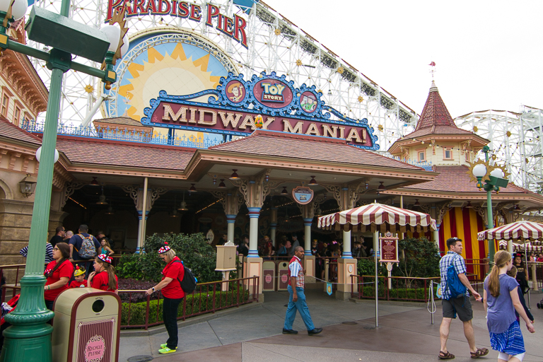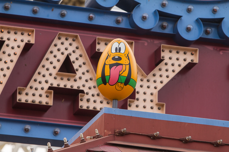 Toy Story Midway Mania! was the next stop to visit. I could see from all the way across the water that Pluto was on top of the sign, but why not get a little exercise and walk to the entrance anyhow. There I confirmed it was Pluto.
