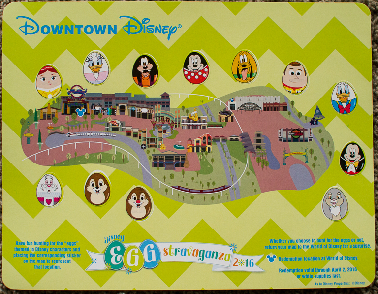 Different than years past (or maybe just because it's the beginning of the event and they have all the different eggs), they let us pick which character we wanted. And not only that, but we were able to redeem our Downtown Disney map here too.