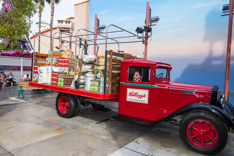 At the Hollywood Land (Truck), Minnie is peeking out from the passenger's side.