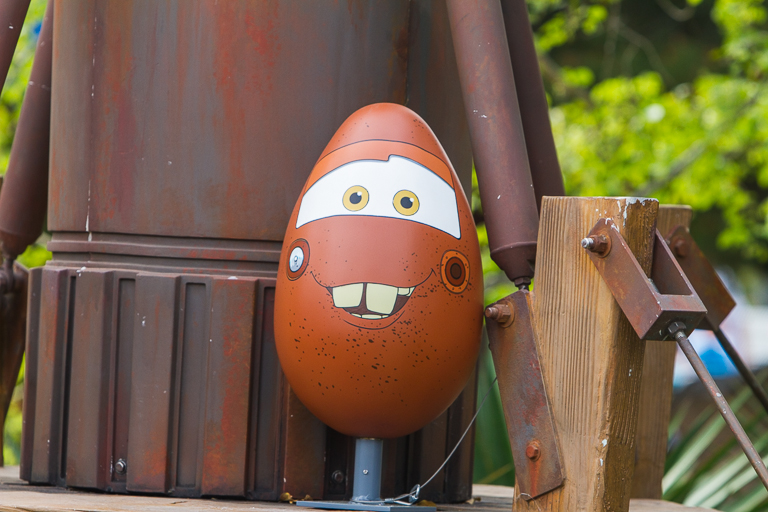 Right across from Fillmore's place is Mater's Junkyard Jamboree. It was here we were supposed to find another egg, but despite multiple trips up and down the street, no egg was found. Hmm. Best continue on.