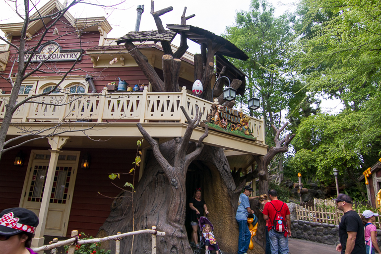 Off to Critter Country where the White Rabbit is looking over Pooh Corner. What's that White Rabbit? Come in and buy a treat? It worked on us, because T got a caramel apple and the rest of us got drinks.