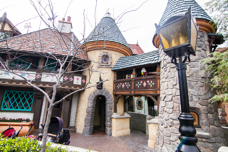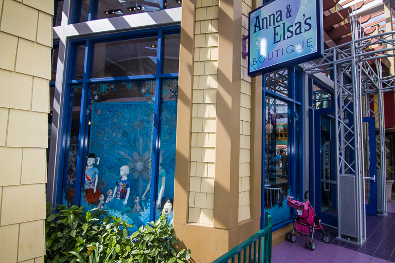 Onward to Anna & Elsa's Boutique. Peeking out from the bottom of the window, it's Minnie.
