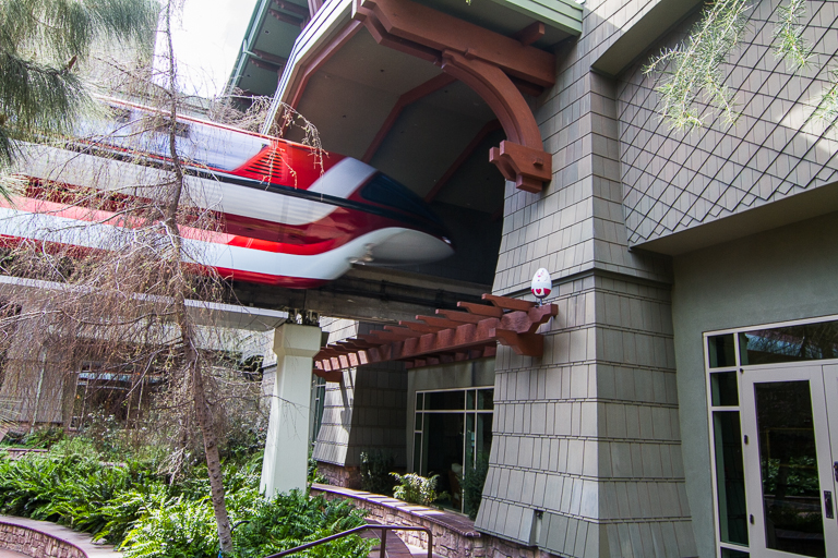 Disney's Grand Californian Hotel and Spa (Brisa Courtyard) was next. Here we found the White Rabbit right next to the track the monorail speeds down, going through the hotel.
