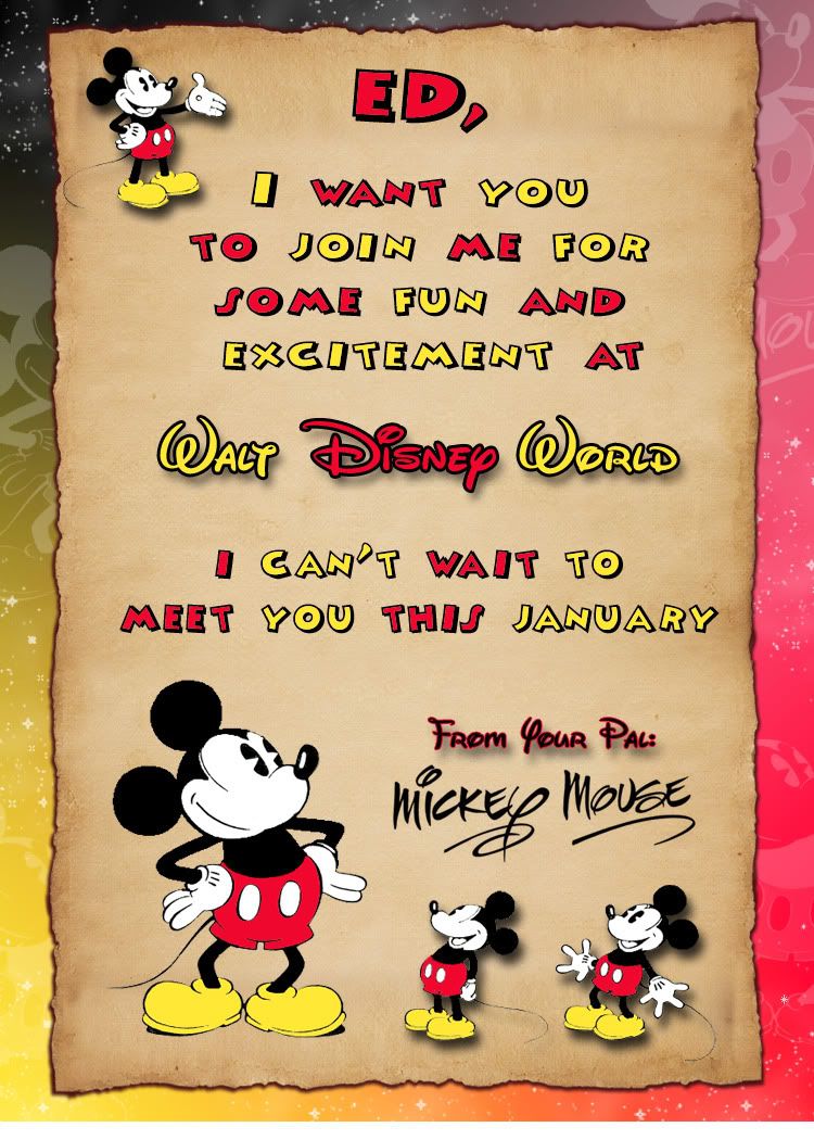 Our January trip is a Christmas surprise for our kids. Would you be able to make an Mickey Mouse invite that says Andrew and Emily,