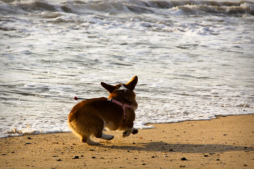 Just wanted to share some pictures...my wife and I took our 9 month old welsh corgi puppy to the beach for the first time this weekend. She had a blast!