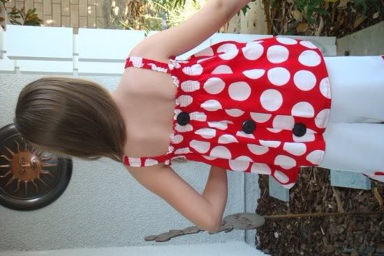 Now this next one I sewed myself! I used Simplicity 4161 and just modified the flounce to add the yellow dot panel. And though I didn't bother taking a picture of the back, I did my first zipper!