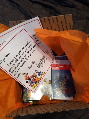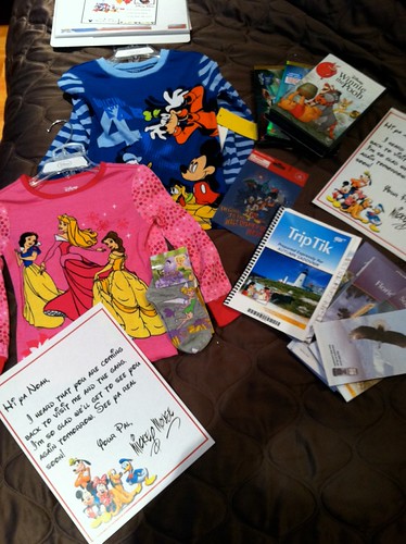 I'm off of work on that day, but the kids have school, so when they arrive home, a box will be sitting on the porch "delivered" by the mail carrier, from Mickey. Our Countdown Calendar will have let them know before school that it's the right day, and they will already know that we are leaving for an overnight drive as soon as DH gets home.