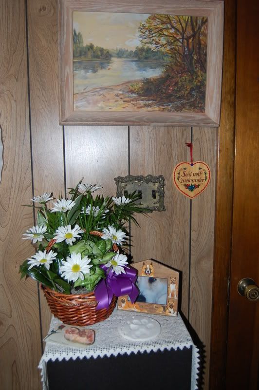 the next two are Mika's box and her pawprint and a photo of her lit every night by a candle...