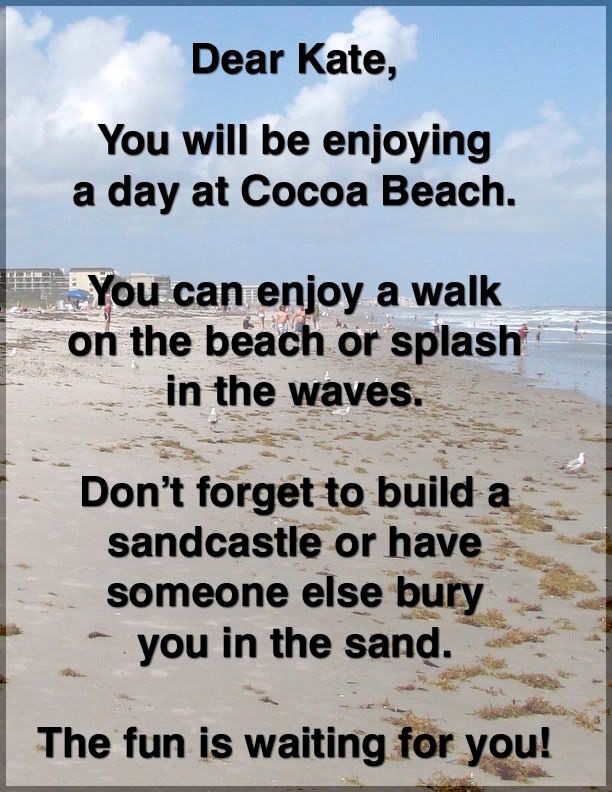 My family and I are heading to beach to celebrate my mom's 60th birthday. We are going to suprise my mom and hire a professional photographer to take some family shots on the beach......she knows we want to have pictures taken, but I told her we'd just find some stranger walking on the beach to take our picture.