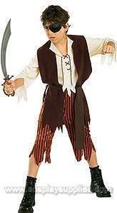After Ry's buddy went home, we ate dinner and then headed to a HUGE craft warehouse in search of a "cheaper" parrot. (No returns at the Halloween store). We found a better looking bird for $2.99 :woohoo: SCORE!!! We purchased him and headed toward the Halloween Adventure store near where we live (the mall I was at was near where I work, and that was 20 min from home). What a surprise to get to the Halloween store! They were sold out of 1/2 the stuff we saw last week! A LOT of stuff sold! Luckily, they had quite a few 'pirate' stuff in Bubba's size to pick from. He finally decided to be this pirate. He also got a sword, hat and has that parrot for his shoulder! He is going to be awesome lookin'!!! So, I try it on him and notice a few 'tears' in the shirt....not really a BIG deal, but I know they will discount a costume if parts are missing (like last week) or they don't have anymore in that size to offer.... So, it went from $27.99 to $19.99... :woohoo: SCORE again!!! I'm on a roll today!!!! :banana: So, we happily paid them another $45 and headed home.