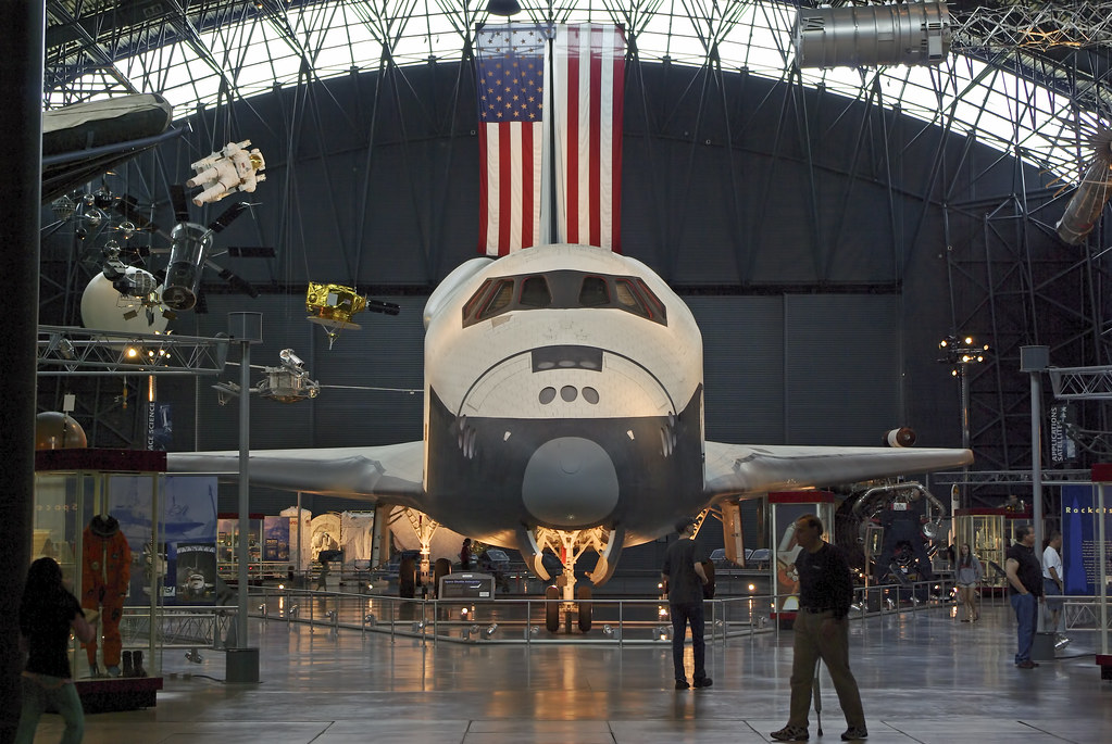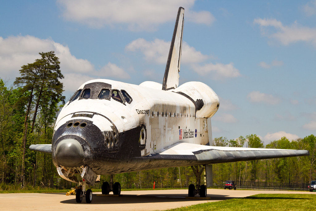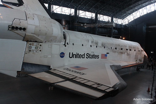 Here's a photo of Shuttle Discovery on its first day on display at the Smithsonian's Udvar-Hazy Center.