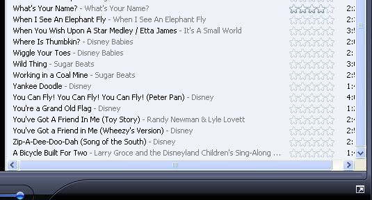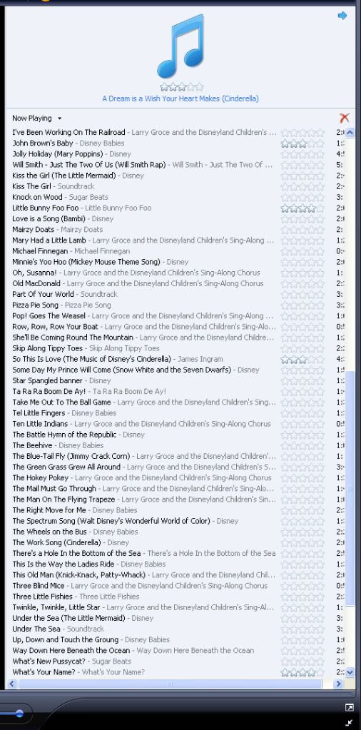 This is what is on DD6's shuffle; clearly we are pretty relaxed about what she picks to add onto it but there are lots of great kid songs on there too.