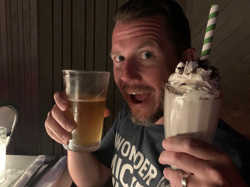 Speaking of love, torn between two of his favorite beverages – milkshakes and beer - he did what any logical person would do. Order both.