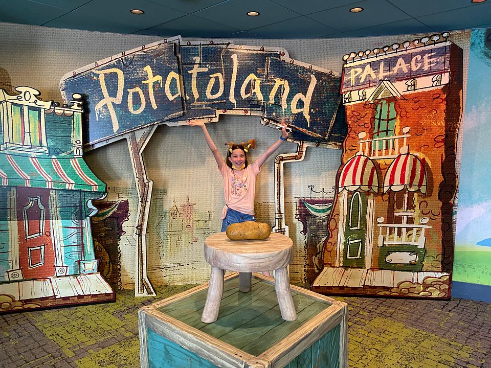After lunch we didn’t stick around long because the park was a mess. At one point Rise, Runaway Railway, Slinky Dog, and Rock N Roller Coaster were all down simultaneously which of course caused pandemonium elsewhere. But we did get to visit Potatoland.