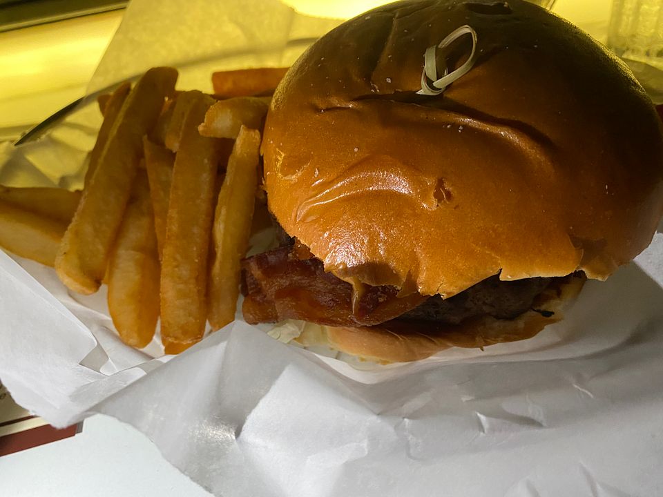 A burger :rolleyes1 Now SciFi does have a really good burger and Jason ordered extra bacon on this one, but in the end it’s just a burger. But he declared it “spectacular” so SciFi for the win.
