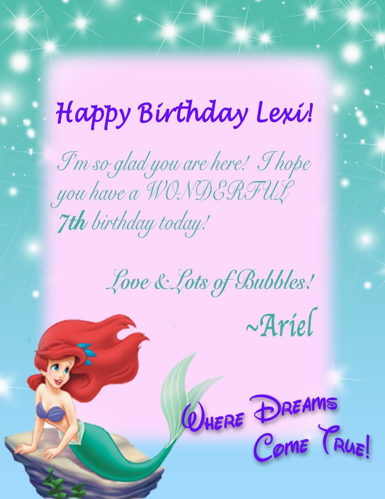 Also a birthday greeting to print out from Ariel (I have a gift from Ariel to leave in the room for her birthday so that would be awesome to go with it)