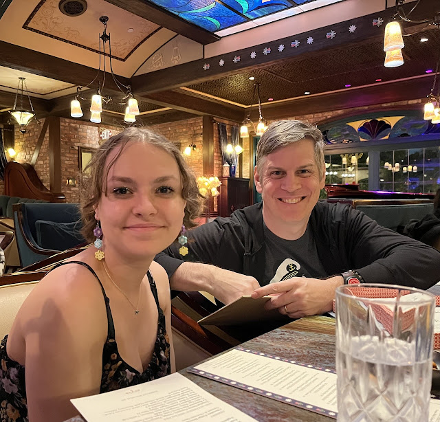 After that we checked in at the Villas at Disneyland Hotel. I returned the rental car and Ubered back to the hotel and we relaxed and got settled. We spent our first evening at Disneyland park and enjoyed a parade, rode a few rides and had dinner with an old friend that I went to college with. It was great to reconnect with her and her husband (who was also a theatre major at CU with us) and enjoy a meal at Club 33, which was super cool and definitely a unique opportunity.