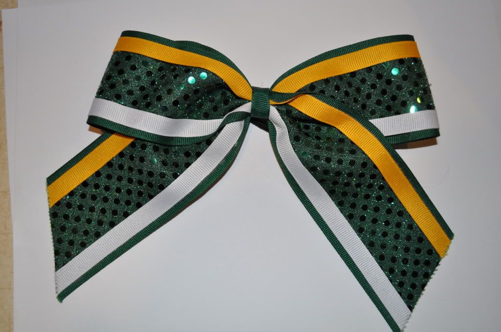 I can send a pic of the bow, but pretty much the tigers bow, but green background, gold & white polka dots!