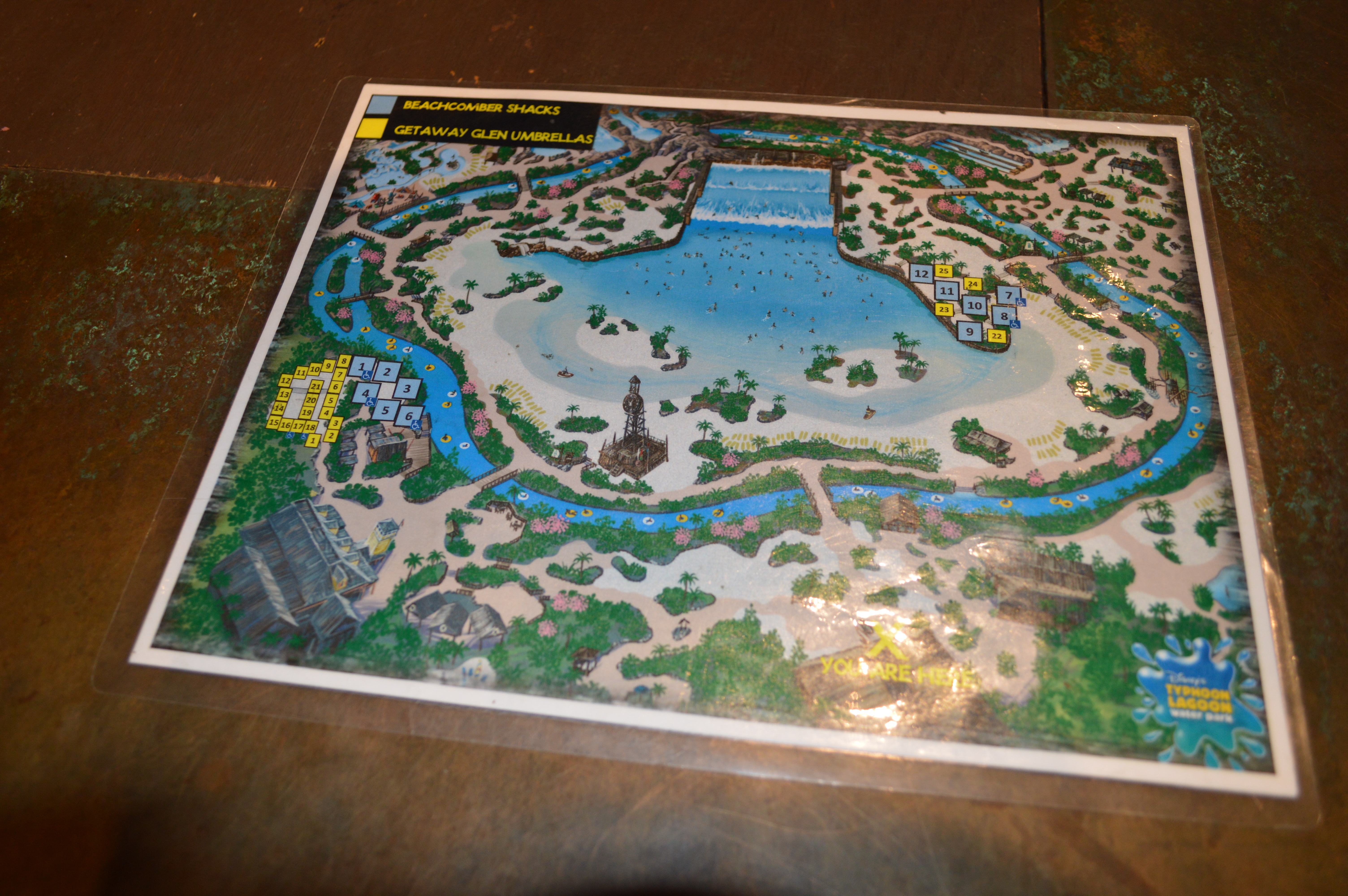 I just checked the map and we definitely had umbrellas near Happy Landings where the beachcomber shacks are also located, with almost direct access to the lazy river. Maybe there's two umbrella areas.