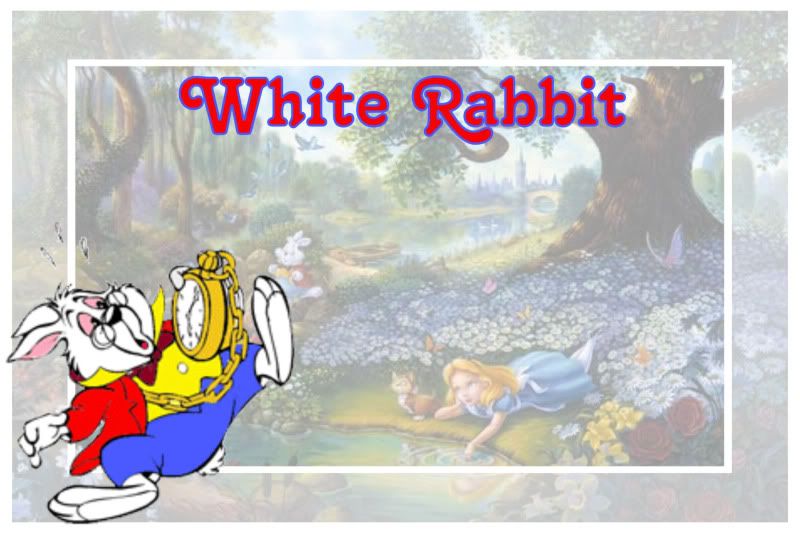 gabby99girl said: http://i226.photobucket.com/albums/...h Cards/Alice In Wonderland/AWWhiteRabbit.jpg http://i345.photobucket.com/albums/p379/ljcollins_2008/Character Autograph Pages/whiterabbit.jpg http://i143.photobucket.com/albums/r132/donatalie/Autograph Books/Volume 1/WhiteRabbit.jpg http://i143.photobucket.com/albums/r132/donatalie/Autograph Books/Volume 3/WhiteRabbit.jpg here's a couple - there are several more in the DISigner's photobuckets!!!! Click to expand... WOW!!! I'm impressed by your organization! Thanks!